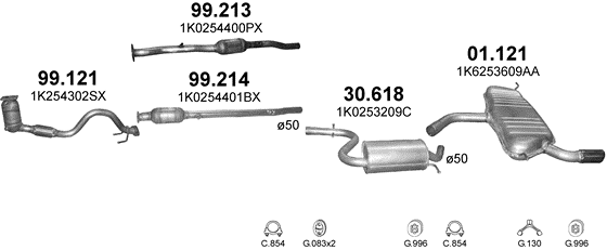 Глушитель Фольксваген Гольф VI (Volkswagen Golf VI) 1.2 09-12 (01.121) Polmostrow