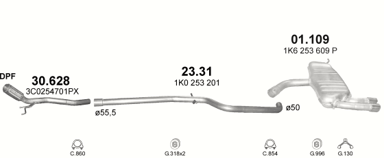 Труба приемная без DPF Фольксваген Пассат (VW Passat) / Ауди А3 (Audi A3) / Сеат Альтеа (Seat Altea , Toledo , Leon) 1.9D/2.0D 04- (30.628) Polmostrow