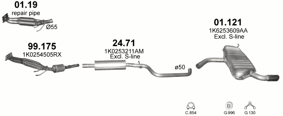 Глушитель Фольксваген Гольф VI (Volkswagen Golf VI) 1.2 09-12 (01.121) Polmostrow