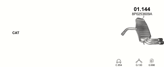 Глушитель Ауди А3 (Audi A3) 1.4/2.0 04-12 (01.144) Polmostrow
