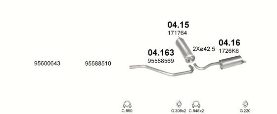 Глушитель Ситроен БХ (Citroen BX) 1.1/ 1.4/ 1.6/ 1.8D/ 1.9/ 1.9D 82 -94 (04.16) Polmostrow