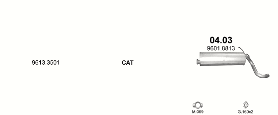 Глушитель Ситроен (Citroen) C15E 1.4 88-97 (04.03) Polmostrow