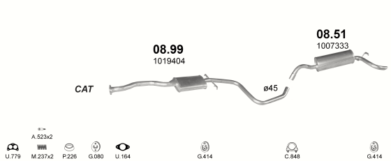 Глушитель Форд Эскорт (Ford Escort) 1.4; 1.6 HB kat 90- (08.51) Polmostrow