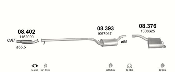 Глушитель Форд Фокус (Ford Focus) 1.8 TDCi, HB 98-04 (08.376) Polmostrow