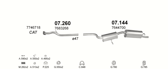 Труба средняя Фиат Уно (Fiat Uno) 1.4 /1.5 87-94 (07.260) Polmostrow