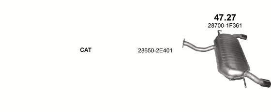 Глушитель Хюндай Туксон (HYUNDAI TUCSON) / Киа Спортейдж (KIA SPORTAGE) 2.0D/2.7 04- Полный привод - (47.27) Polmostrow