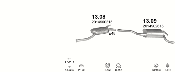 Глушитель Мерседес В121 (Mercedes W121) 82-93 190E 1.8-2.0 kat (13.09) Polmostrow