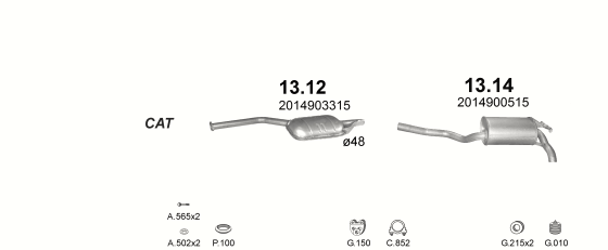 Глушитель Мерседес 190 (Mercedes 190) 2.0 Diesel 83-07/93 (13.14) Polmostrow