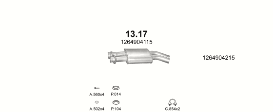 Глушитель Мерседес В126 (Mercedes W126) 4.2/4.9/5.0 85-91 (13.17) Polmostrow
