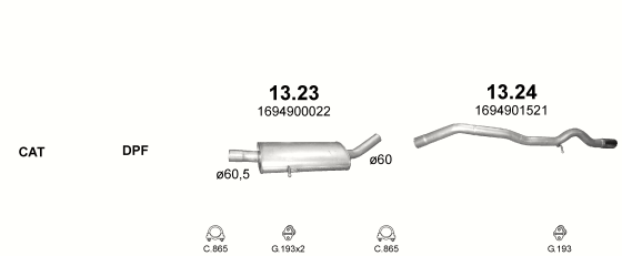 Глушитель Мерседес А160 (Mercedes A160) / Мерседес В169 (Mercedes W169) 2.0 D 04-12 (13.23) Polmostrow