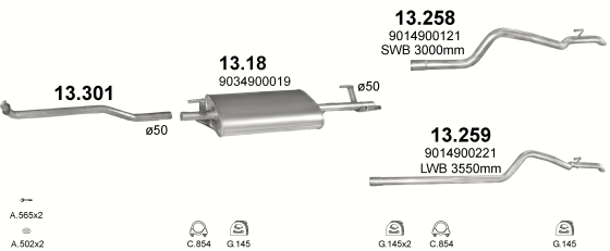 Глушитель Мерседес Спринтер (Mercedes Sprinter) 208D 308D 408D 02/95-04/00 2.3D (13.18) Polmostrow