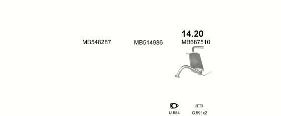 Глушитель Митсубиси Кольт (Mitsubishi Colt) (14.20) 88-92 1.8D Polmostrow