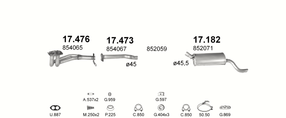 Глушитель Опель Кадет Е Комбо (Opel Kadett E Combo) 85-93 1.3/1.6/1.7D (17.182) Polmostrow