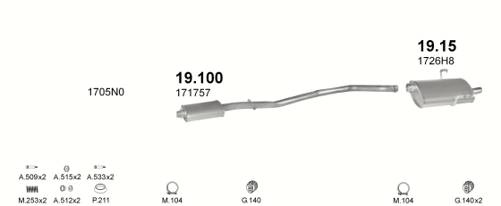 Глушитель Пежо 406 (Peugeot 406) 1.6i/1.8i 16V kat 95- (19.15) Polmostrow