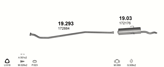 Глушитель Пежо 309 (Peugeot 309) 1.1-1.9D 85-94 (19.03) Polmostrow
