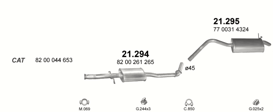 Глушитель Рено Кенго (Renault Kangoo) 1.5dCi TD 01- ; 1.9dTi TD 99-03 (21.295) Polmostrow