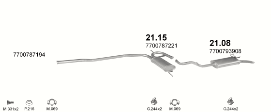 Глушитель Рено Р19 (Renault R19) 1.4; 1.7; 1.9D Chamade kat 88-92 (21.08) Polmostrow