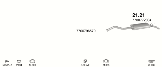 Глушитель Рено Р21 (Renault R21) 1.4; 1.7; 2.0 86-93 (21.21) Polmostrow
