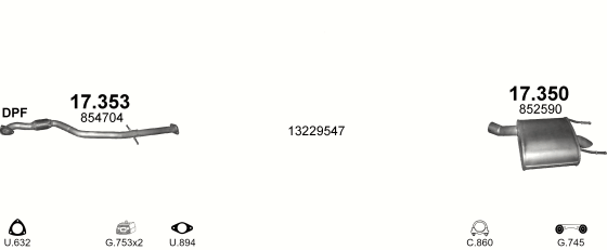 Глушитель Опель Инсигниа (Opel Insignia) 2.0 CDTi 08-12 (17.350) Polmostrow