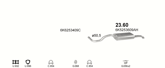 Глушитель Сеат Кордоба (Seat Cordoba) / Фольксваген Поло (Volkswagen Polo) 1.0i / 1.4i / 1,6i 95-02 (23.60) Polmostrow