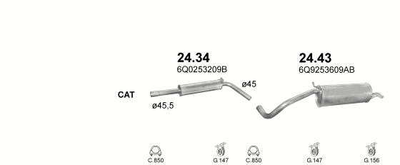 Глушитель Шкода Фабия (Skoda Fabia) 1.4i , 1.4i-16V combi 00- (24.43) Polmostrow