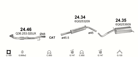 Труба приемная Сеат Кордоба / Ибица / Шкода Фабиа / Фольксваген Поло (Seat Cordoba ; Ibiza / Skoda Fabia / VW Polo) 1.9 D, /2006 - 7/2011 (24.46) Polmostrow