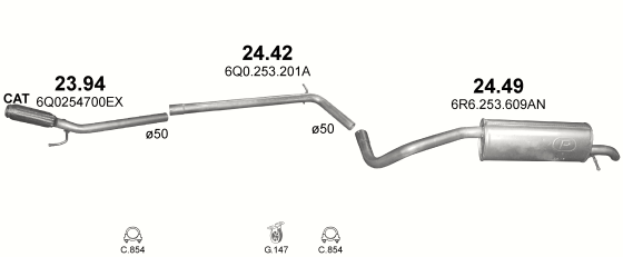 Глушитель Шкода Фабиа / Сеат Ибица / Фольксваген Поло (Skoda Fabia / Seat Ibiza / VW Polo) 1.2 / 1.6 TDi 07 - (24.49) Polmostrow