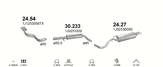 Глушитель Шкода Октавия (Skoda Octavia) 1.6i HB 100KM / Сеат Толедо (Seat Toledo) 1,9 SDi 01- / Фольксваген Гольф IV (Volkswagen Golf IV) 1,4i-16V 1,6i, 1,9SDi 99- (24.27) Polmostrow