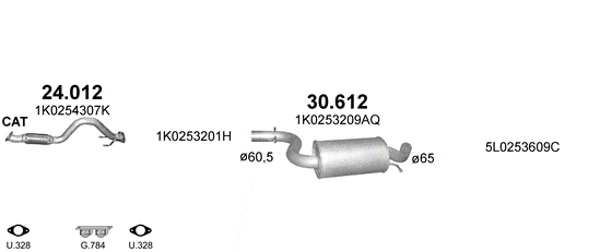 Труба приемная Фольксваген Гольф, Джетта, Пассат, Скирокко (Volswagen Golf, Jetta, Passat, Scirocco)/Ауди А3 (Audi A3)/Сиат Алтея, Леон (Seat Altea,Leon)/Шкода Супер Б, Октавия (Skoda Super B, Octavia) 1.4, 1.5, 07-13 (24.012) Polmostrow