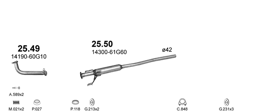 Резонатор Сузуки Балено (Suzuki Baleno) 1.3i / 1.6i - 16V 95-00 (25.50) Polmostrow