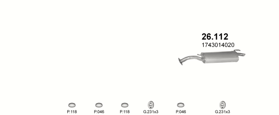 Глушитель Тойота Королла (Toyota Corolla) (26.112) 1.3 1.6 1.3 -12V 05/83-05/87 Polmostrow