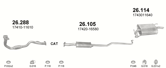 Глушитель Тойота Королла (Toyota Corolla) (26.114) 1.3i -16V 05/92-05/95-04/97 Polmostrow