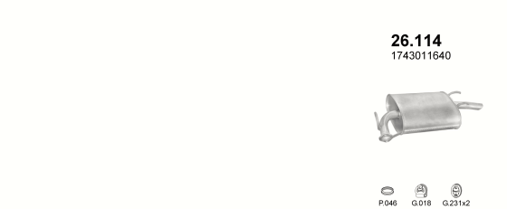 Глушитель Тойота Королла (Toyota Corolla) (26.114) 1.3i -16V 05/92-05/95-04/97 Polmostrow