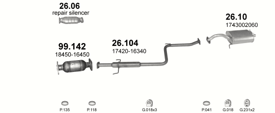 Глушитель Тойота Королла (Toyota Corolla) (26.10) 1.3i -12V; 1.6; 1.6 -16V; 1.8D 87-92 Polmostrow