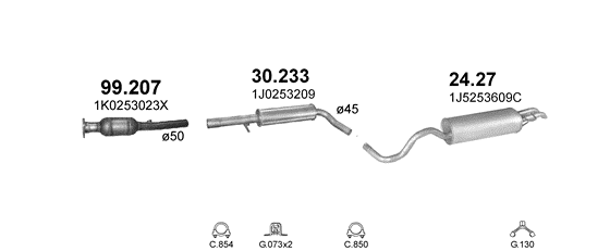 Глушитель Шкода Октавия (Skoda Octavia) 1.6i HB 100KM / Сеат Толедо (Seat Toledo) 1,9 SDi 01- / Фольксваген Гольф IV (Volkswagen Golf IV) 1,4i-16V 1,6i, 1,9SDi 99- (24.27) Polmostrow