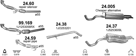 Заменитель катализатора Шкода Октавиа (Skoda Octavia) / Ауди А3 (Audi A3) / Сеат Леон, Толедо (Seat Leon, Toledo) / Фольксваген Бора, Гольф IV (Volkswagen Bora, Golf IV) 1.9TDi 97 - 06/06 (24.60) Polmostrow