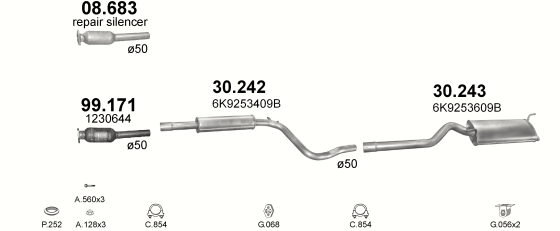 Заменитель катализатора Ford Galaxy 1.9 TDі / Сеат Алхамбра, Кордоба, Ибица, Толедо / Фольцфаген Гольф III, Шаран, Венто (Vento) (08.683) Polmostrow