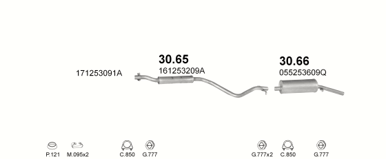 Глушитель Фольксваген Гольф I (Volkswagen Golf I) 1.6/1.6TD/GTI/GTL 77-82 / Фольксваген Сирокко (Volkswagen Scirocco) 77-81 (30.66) Polmostrow