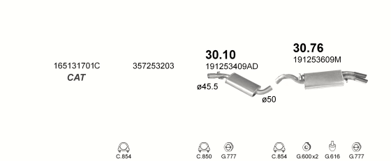 Резонатор Фольксваген Гольф II (Volkswagen Golf II) 1.8 / 1.8i / GTI kat. 87-91 / Фольксваген Джетта (Volkswagen Jetta) 87-91 (30.10) Polmostrow