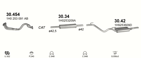 Глушитель Фольксваген Гольф III (Volkswagen Golf III) 1.4i/1.6i Variant kat 93- (30.42) Polmostrow