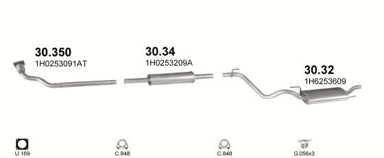 Глушитель Фольксваген Гольф III (Volkswagen Golf III) 1.4/1.6/1.8 91-93 (30.32) Polmostrow