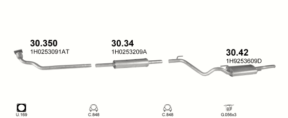 Глушитель Фольксваген Гольф III (Volkswagen Golf III) 1.4i/1.6i Variant kat 93- (30.42) Polmostrow