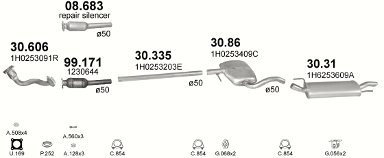 Глушитель Фольксваген Гольф III (Volkswagen Golf III) 1.6i/1.8i/2.0/1.9D/1.9TD 8V kat hatch., cabrio 91-01 (30.31) Polmostrow