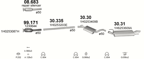 Глушитель Фольксваген Гольф III (Volkswagen Golf III) 1.6i/1.8i/2.0/1.9D/1.9TD 8V kat hatch., cabrio 91-01 (30.31) Polmostrow