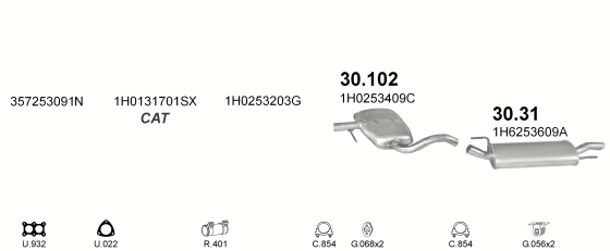 Глушитель Фольксваген Гольф III (Volkswagen Golf III) 1.6i/1.8i/2.0/1.9D/1.9TD 8V kat hatch., cabrio 91-01 (30.31) Polmostrow