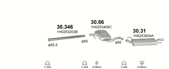 Глушитель Фольксваген Гольф III (Volkswagen Golf III) 1.6i/1.8i/2.0/1.9D/1.9TD 8V kat hatch., cabrio 91-01 (30.31) Polmostrow
