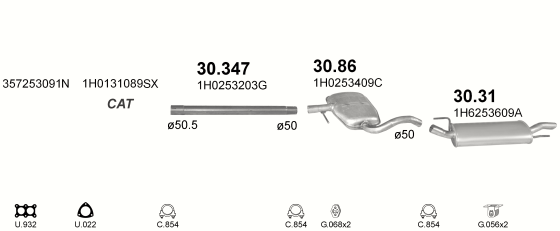 Глушитель Фольксваген Гольф III (Volkswagen Golf III) 1.6i/1.8i/2.0/1.9D/1.9TD 8V kat hatch., cabrio 91-01 (30.31) Polmostrow