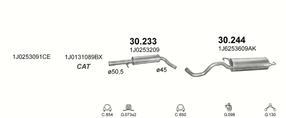 Резонатор Ауди А3 (Audi A3) 96- / Шкода Октавиа (Skoda Octavia) 97- / Фольксваген Бора (Volkswagen Bora) 98- / Фольксваген Гольф IV (Volkswagen Golf IV) 97- 1.6i kat (30.233) Polmostrow