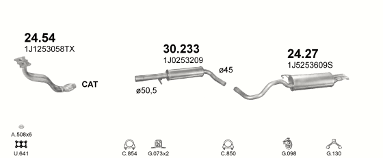 Резонатор Ауди А3 (Audi A3) 96- / Шкода Октавиа (Skoda Octavia) 97- / Фольксваген Бора (Volkswagen Bora) 98- / Фольксваген Гольф IV (Volkswagen Golf IV) 97- 1.6i kat (30.233) Polmostrow