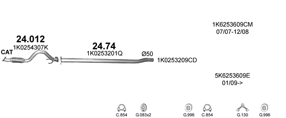 Труба приемная Фольксваген Гольф, Джетта, Пассат, Скирокко (Volswagen Golf, Jetta, Passat, Scirocco)/Ауди А3 (Audi A3)/Сиат Алтея, Леон (Seat Altea,Leon)/Шкода Супер Б, Октавия (Skoda Super B, Octavia) 1.4, 1.5, 07-13 (24.012) Polmostrow